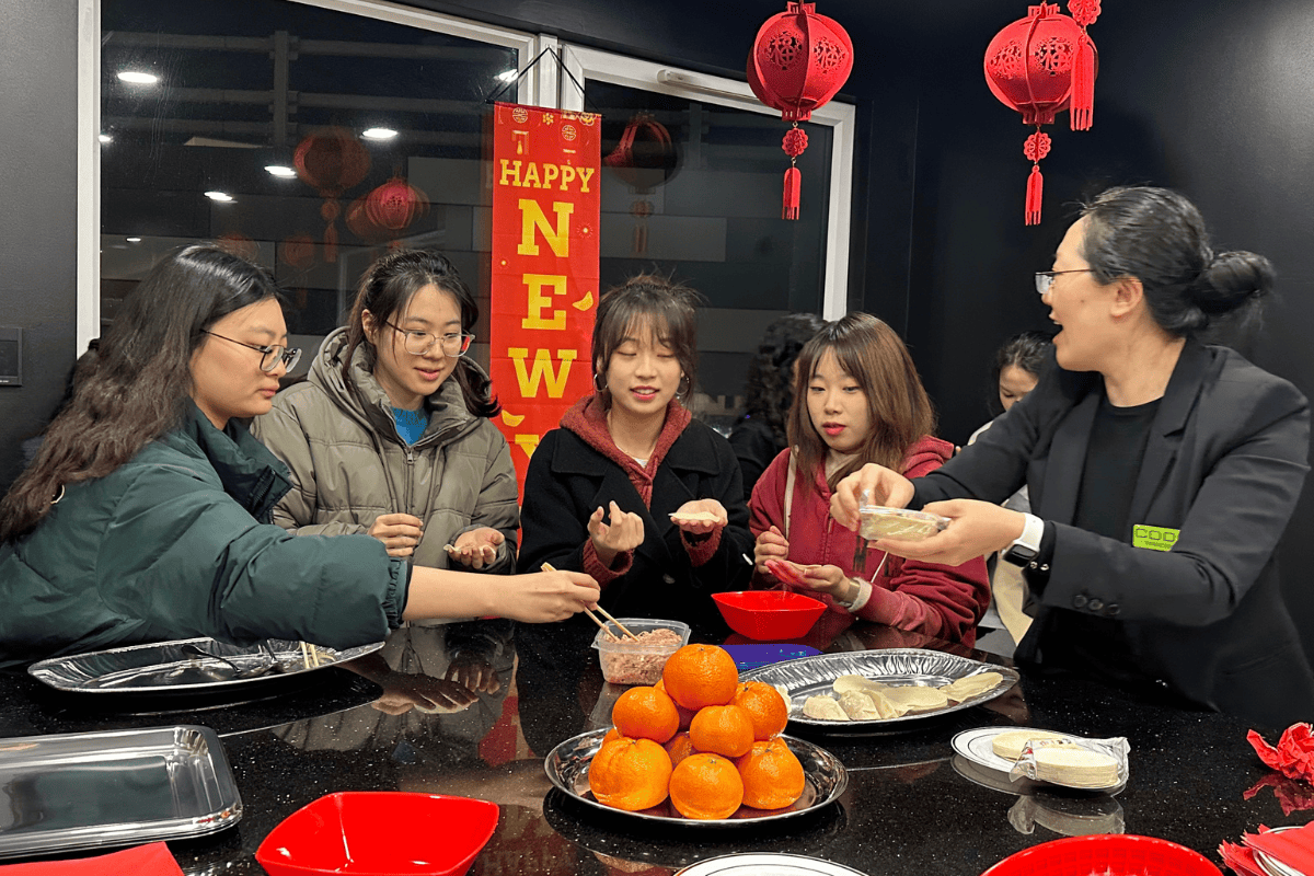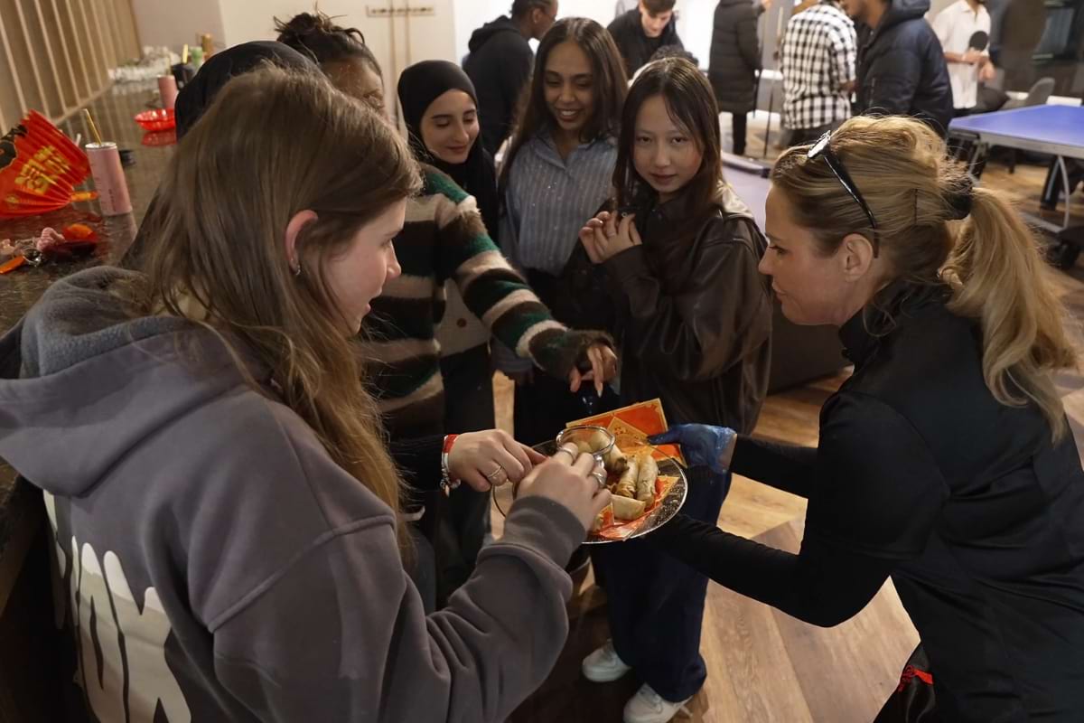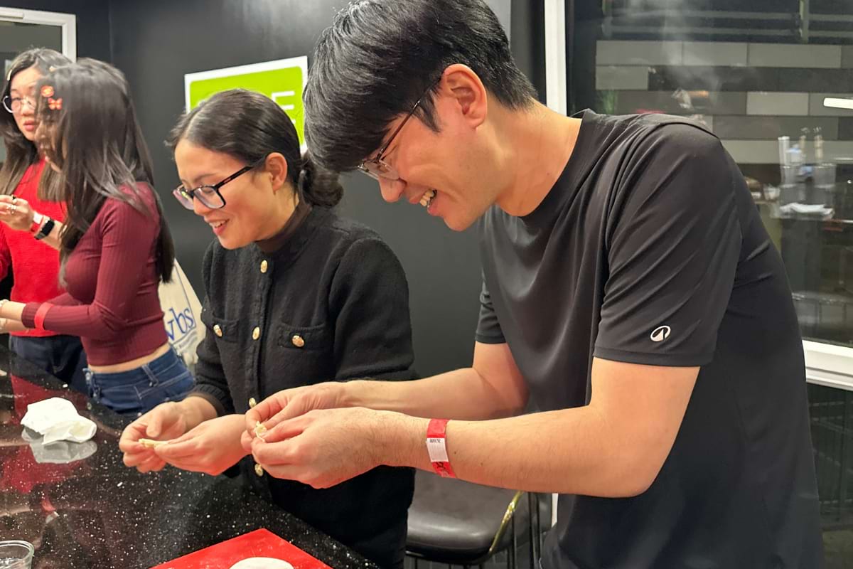Students and staff prepare dumplings together for the Lunar New Year Party 🎉