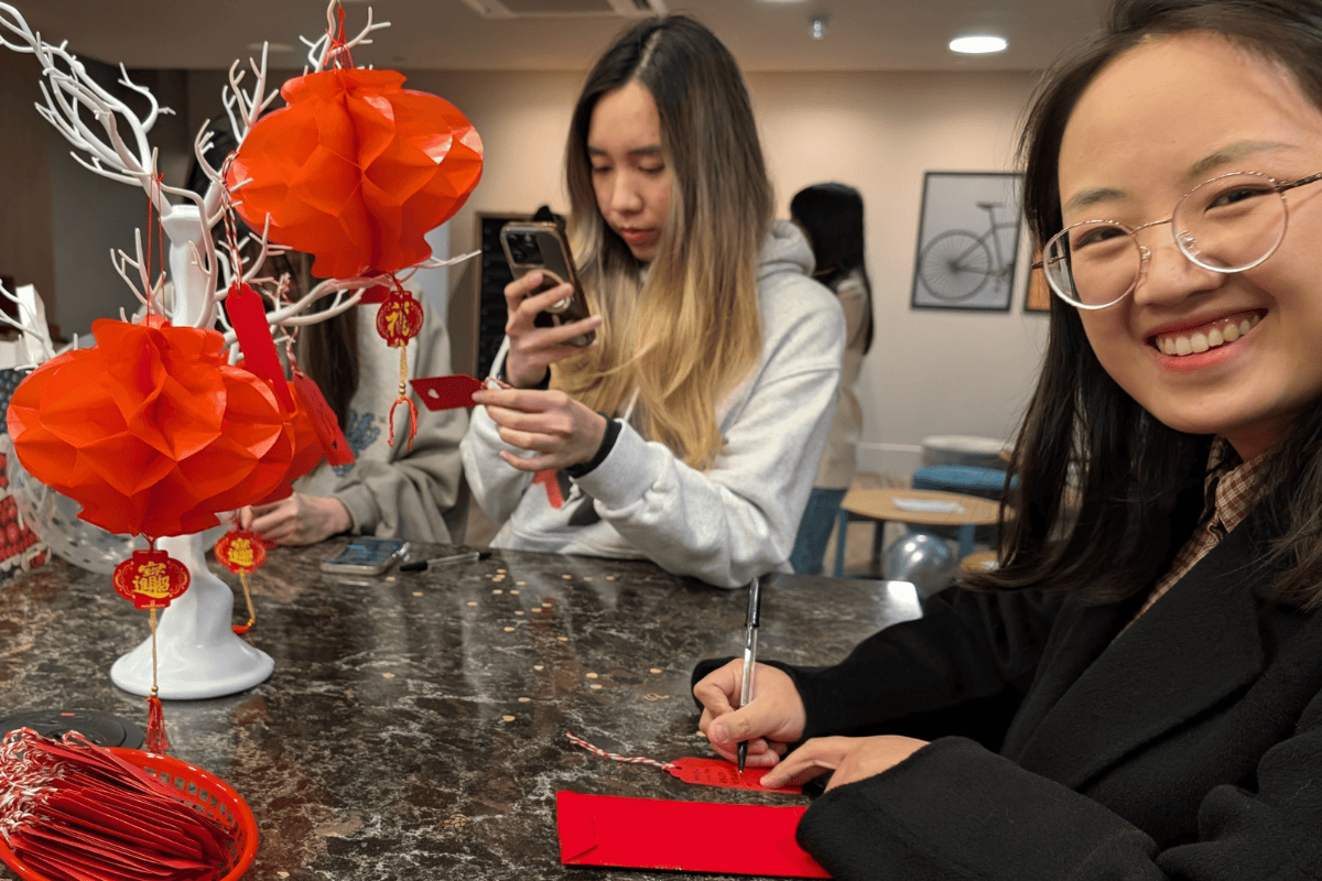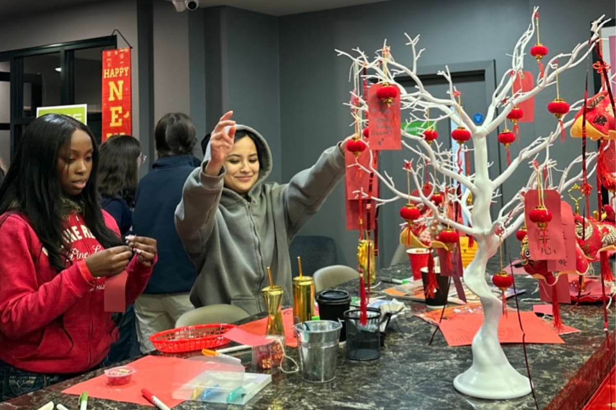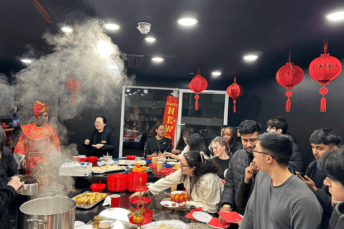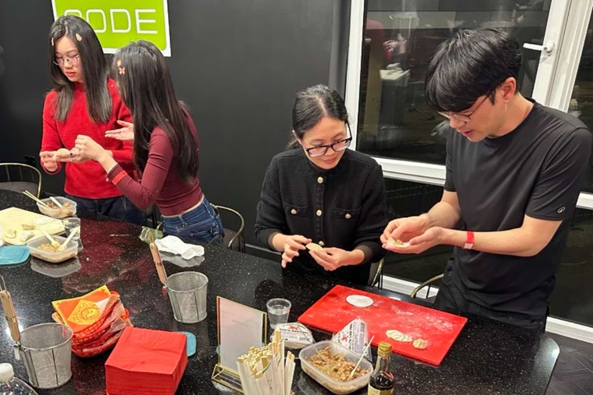 Students and staff prepare dumplings together for the Lunar New Year Party 🎉