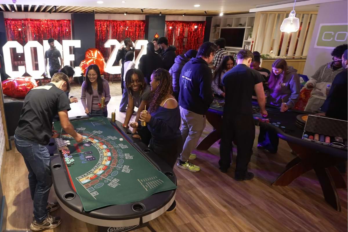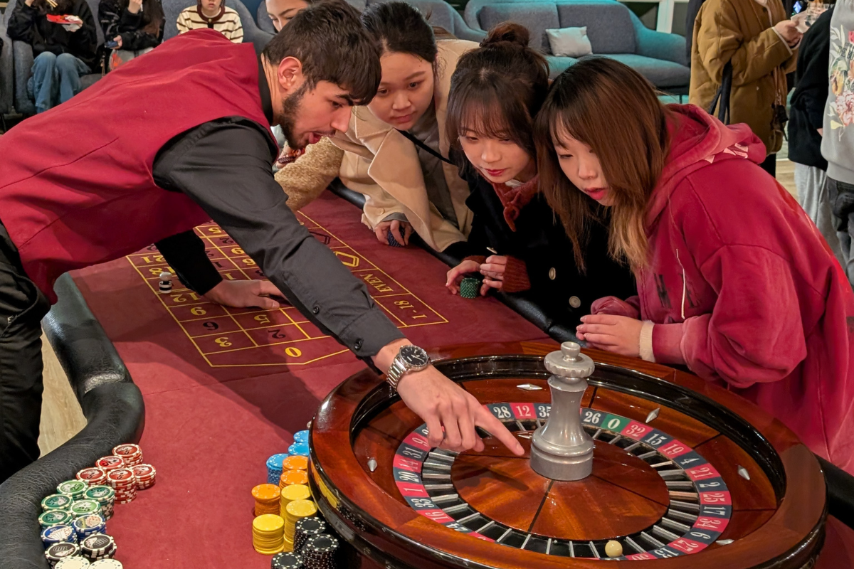 The excitement is high at the Lunar New Year casino table—no cash, just pure fun and friendly competition