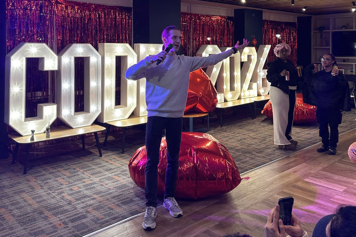 CODE's friendly Bingo announcer ensures all participants understand the rules before the game begins 🤓